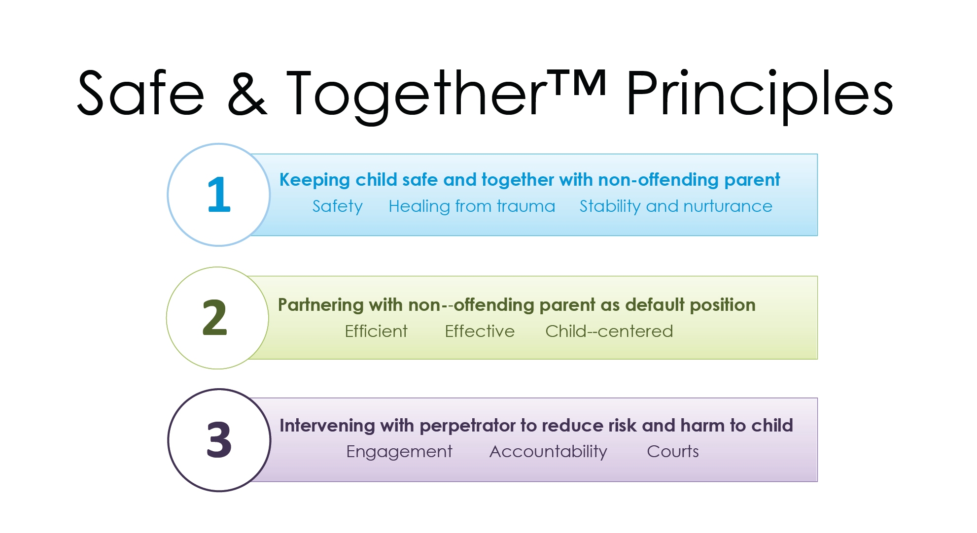 The goal of the Safe & Together™ Model is to create systems and practice change that is child-centered, keeping children safe and together with the non-violent parent.